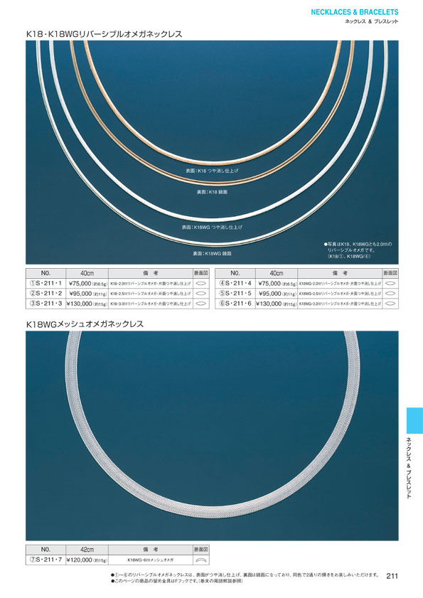 P.0 表紙 P.1 目次(目次一覧↓) ジュエリー イン ファッション ■ Pt スリーストーン ペンダントチェーン ■ K18WG スリーストーン ペンダントチェーン ■ レーザーホールダイヤモンド ペンダントチェーン ■ ダイヤモンドハイジュエリー ■ ジュエリーインファッション ■ ヘルシー&ラッキージュエリー ■ ジュエリー イン ファッション ■ ペア&ポージー ■ ブライダルジュエリー ■ ダイヤモンドデザインリング ■ カラーストーンデザインリング ■ デザインリング ■ カラーストーンジュエリー ■ パールジュエリー ■ ピアス ■ イヤリング ■ ブローチ ■ ネックレス&ブレスレット P.190 Ptベーシックチェーン P.191 Ptベーシックチェーン P.192 Ptベーシックチェーン P.193 Ptベーシックチェーン P.194 Ptベーシックチェーン P.195 Pt・K18WGベーシックチェーン P.196 Pt・K18WGベーシックチェーン P.197 K18WGベーシックチェーン P.198 K18ベーシックチェーン P.199 K18ベーシックチェーン P.200 K18ベーシックチェーン P.201 K18ベーシックチェーン P.202 K18ベーシックチェーン P.203 K18ベーシックチェーン P.204 K18ベーシックチェーン P.205 K18ベーシックチェーン P.206 オメガネックレス P.207 オメガネックレス P.208 オメガネックレス P.209 オメガネックレス P.210 リバーシブルオメガネックレス P.211 リバーシブル オメガネックレス P.212 Ptデザインネックレス P.213 K18WGベーシックチェーン P.214 Pt・K18WGデザインネックレス P.215 K18WGデザインネックレス P.216 K18WG・K18デザインネックレス P.217 コンビデザインネックレス P.218 コンビデザインネックレス P.219 コンビデザインネックレス P.220 K18デザインネックレス P.221 K18デザインネックレス P.222 K18WGブレスレット P.223 ブレスレット P.224 マグネットYチェーン P.225 マグネットYチェーン P.226 ブレスレット P.227 アンクレット P.228 スライドチェーン P.229 メガネチェーン P.230 K18喜平ネックレス P.231 K18喜平ネックレス P.232 K18喜平ネックレス P.233 K18喜平ネックレス P.234 Pt喜平ネックレス P.235 Pt喜平ネックレス P.236 Pt喜平ネックレス P.237 K18喜平ブレスレット P.238 K18喜平ブレスレット P.239 K18喜平ブレスレット P.240 Pt喜平ブレスレット P.241 Pt喜平ブレスレット ■ メンズジュエリー