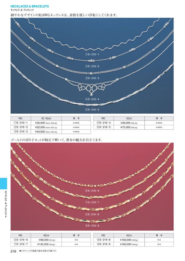 P.0 表紙 P.1 目次(目次一覧↓) ジュエリー イン ファッション ■ Pt スリーストーン ペンダントチェーン ■ K18WG スリーストーン ペンダントチェーン ■ レーザーホールダイヤモンド ペンダントチェーン ■ ダイヤモンドハイジュエリー ■ ジュエリーインファッション ■ ヘルシー&ラッキージュエリー ■ ジュエリー イン ファッション ■ ペア&ポージー ■ ブライダルジュエリー ■ ダイヤモンドデザインリング ■ カラーストーンデザインリング ■ デザインリング ■ カラーストーンジュエリー ■ パールジュエリー ■ ピアス ■ イヤリング ■ ブローチ ■ ネックレス&ブレスレット P.190 Ptベーシックチェーン P.191 Ptベーシックチェーン P.192 Ptベーシックチェーン P.193 Ptベーシックチェーン P.194 Ptベーシックチェーン P.195 Pt・K18WGベーシックチェーン P.196 Pt・K18WGベーシックチェーン P.197 K18WGベーシックチェーン P.198 K18ベーシックチェーン P.199 K18ベーシックチェーン P.200 K18ベーシックチェーン P.201 K18ベーシックチェーン P.202 K18ベーシックチェーン P.203 K18ベーシックチェーン P.204 K18ベーシックチェーン P.205 K18ベーシックチェーン P.206 オメガネックレス P.207 オメガネックレス P.208 オメガネックレス P.209 オメガネックレス P.210 リバーシブルオメガネックレス P.211 リバーシブルオメガネックレス P.212 Ptデザインネックレス P.213 K18WGベーシックチェーン P.214 Pt・K18WGデザインネックレス P.215 K18WGデザインネックレス P.216 K18WG・K18 デザインネックレス P.217 コンビデザインネックレス P.218 コンビデザインネックレス P.219 コンビデザインネックレス P.220 K18デザインネックレス P.221 K18デザインネックレス P.222 K18WGブレスレット P.223 ブレスレット P.224 マグネットYチェーン P.225 マグネットYチェーン P.226 ブレスレット P.227 アンクレット P.228 スライドチェーン P.229 メガネチェーン P.230 K18喜平ネックレス P.231 K18喜平ネックレス P.232 K18喜平ネックレス P.233 K18喜平ネックレス P.234 Pt喜平ネックレス P.235 Pt喜平ネックレス P.236 Pt喜平ネックレス P.237 K18喜平ブレスレット P.238 K18喜平ブレスレット P.239 K18喜平ブレスレット P.240 Pt喜平ブレスレット P.241 Pt喜平ブレスレット ■ メンズジュエリー